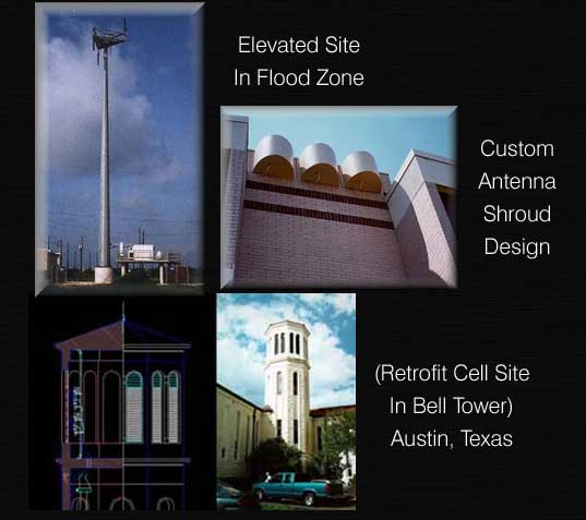 Our past projects include monopole, self support, guy tower sites in all areas; build-outs of cellular equipment rooms and roof top installation on existing office towers, strip centers, and warehouses; cellular sites built in power-line structures; and internal wireless loops to cover the interior space of high rise buildings. We have also done complete engineering and architecture on switches.